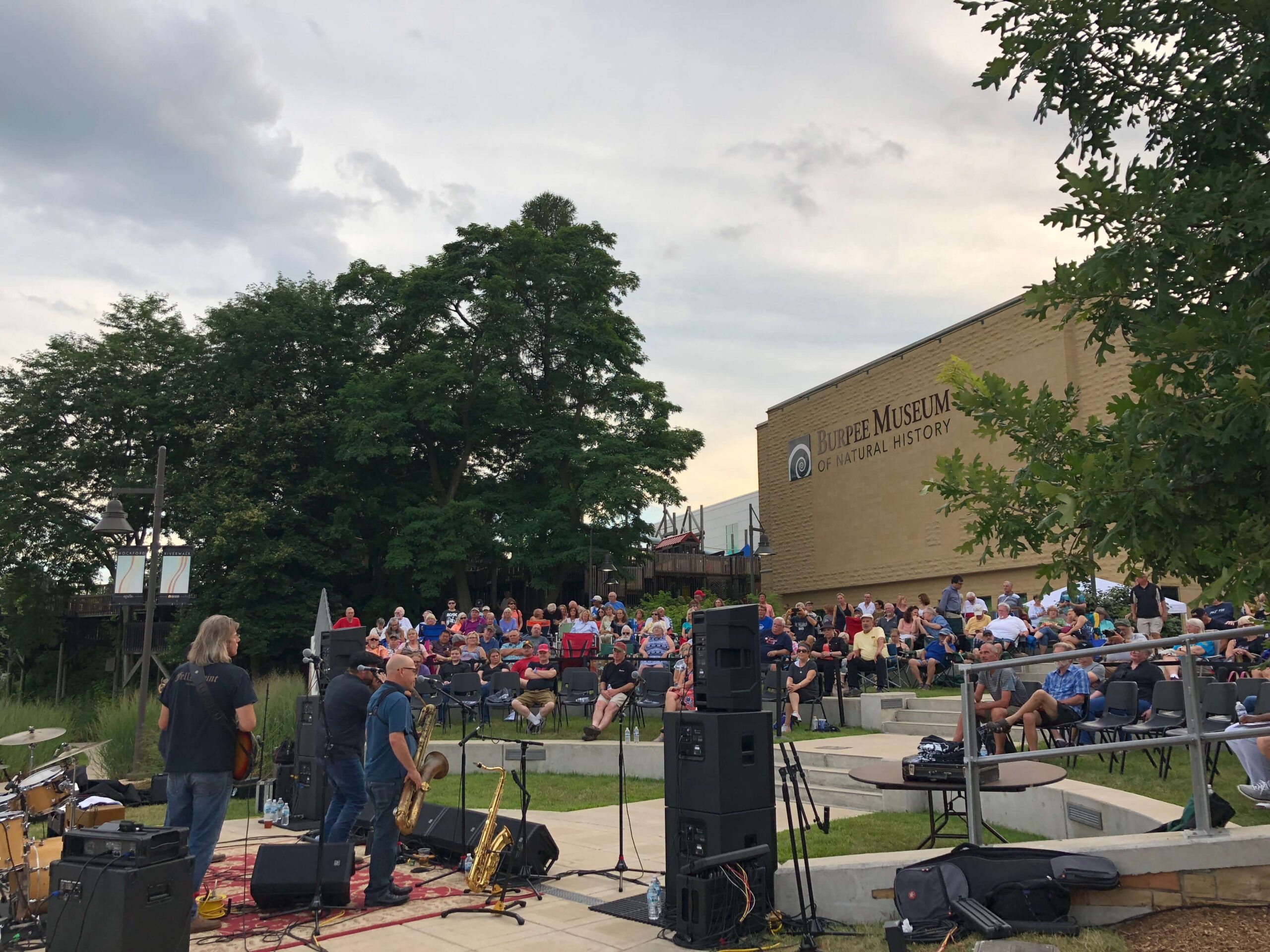 Located on the scenic riverfront, Burpee Museum offers versatile spaces for larger events. The Riverview Hall and adjoining outdoor Terrace and Amphitheater can accommodate up to 250 guests (seating varies by event).
