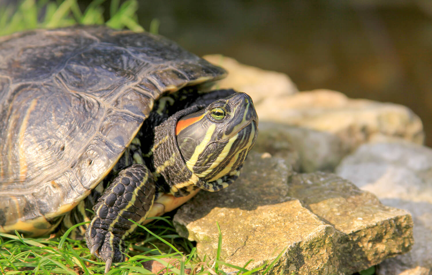 Red-eared Sliders are hardy, adaptable turtles. They bask in groups and feed on diverse plant and animal material. Their success stems from tolerance of variable temperatures and habitats.