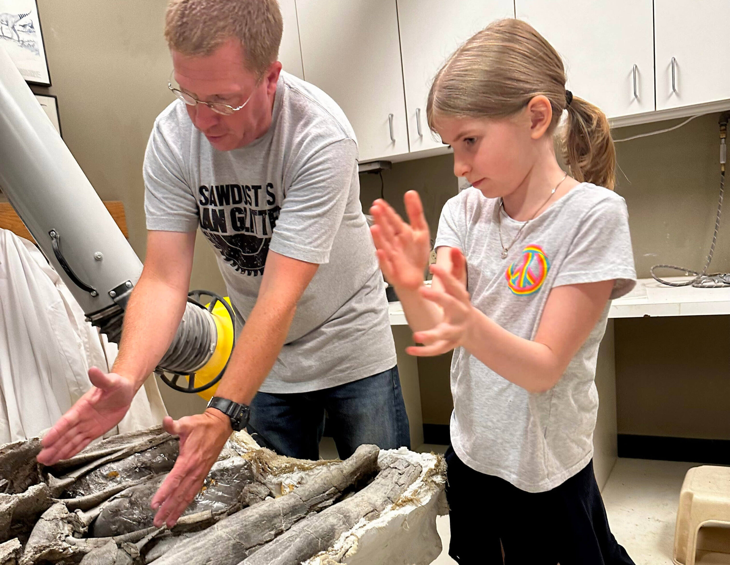 Talk to scientists at the open window at the viewing lab